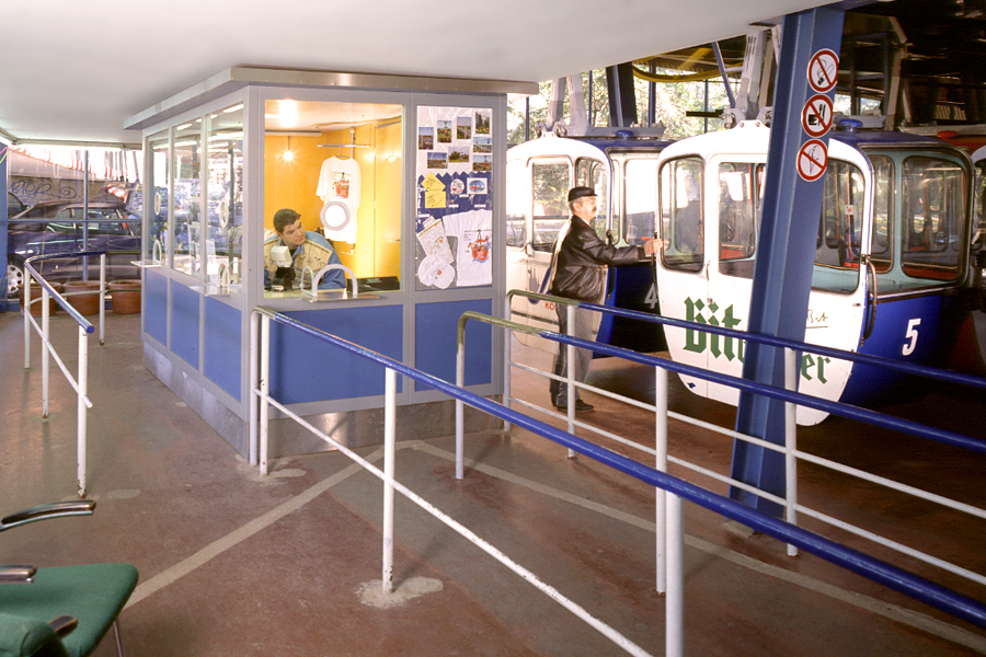 Während andere abheben, sitzt es sich bequem im Kassenhäuschen der Kölner Seilbahn. Hell und freundlich, aber auch sicher gestaltet!