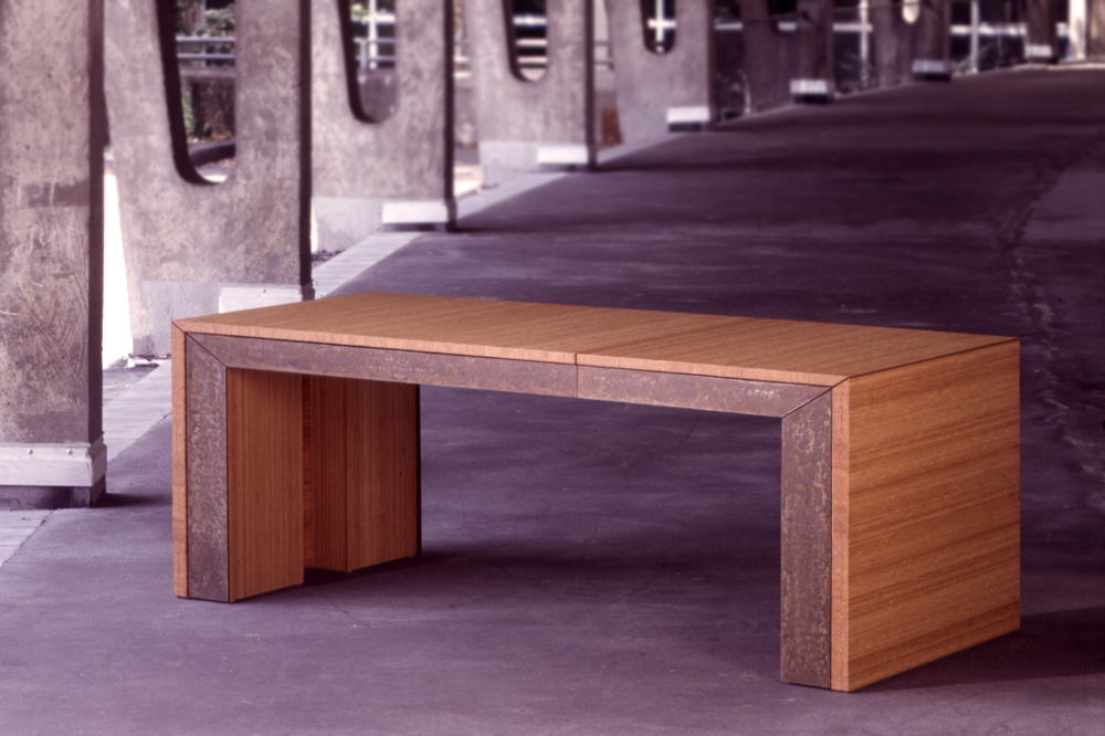 Schreibtisch aus Bambus mit geröstetem und gewachstem Stahl